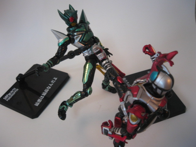 左の写真に写ってるのはガチャポン、あとの写真のは装着変身のハイパーカブトとガタックです。